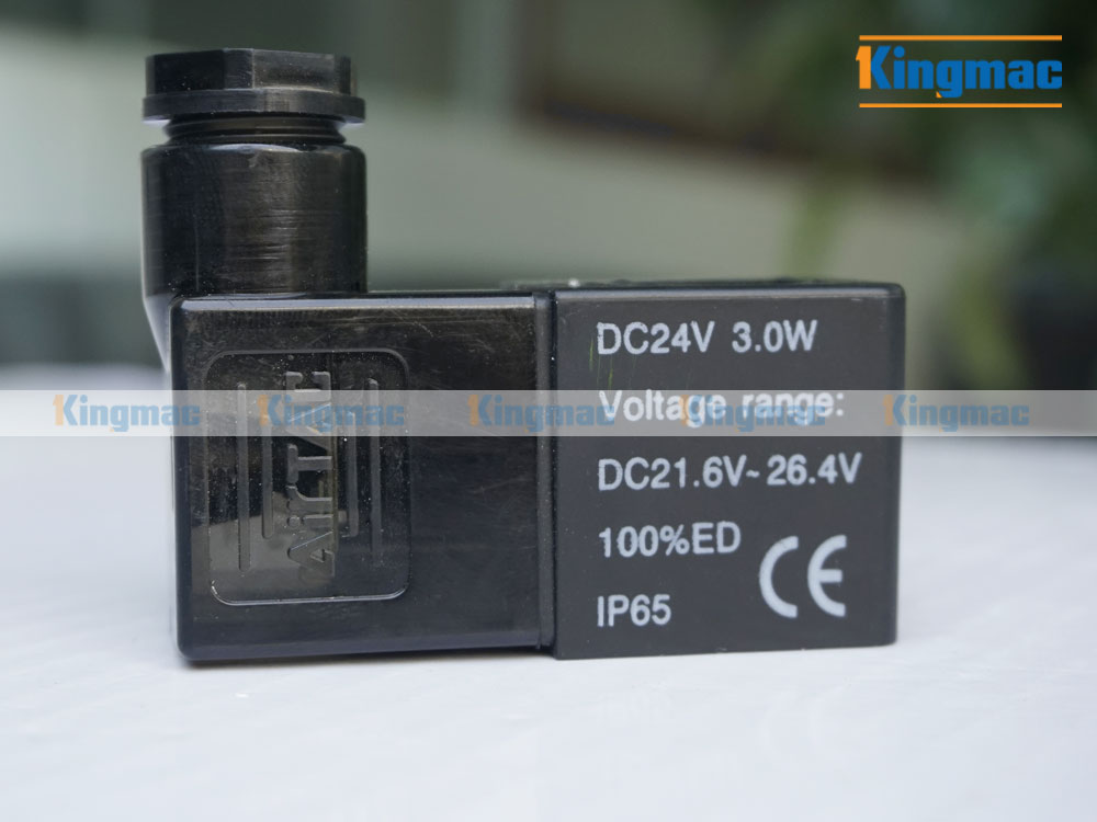 – Do dòng điện 24v có giá trị hằng số nên từ trường được tạo ra sẽ liên tục cung cấp cho cuộn hút. Lực điện từ có độ lớn đủ để thắng được lực ma sát và lực lò xo nên sẽ giữ lõi van tại vị trí mở. Khi ngắt điện, lực từ mất, lò xo sẽ đưa lõi van về vị trí ban đầu.