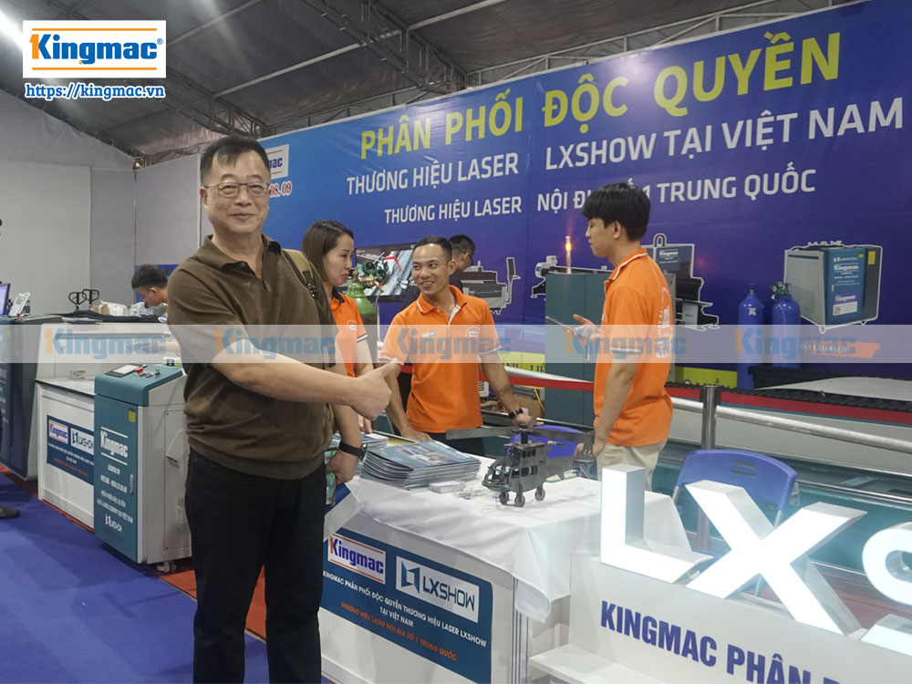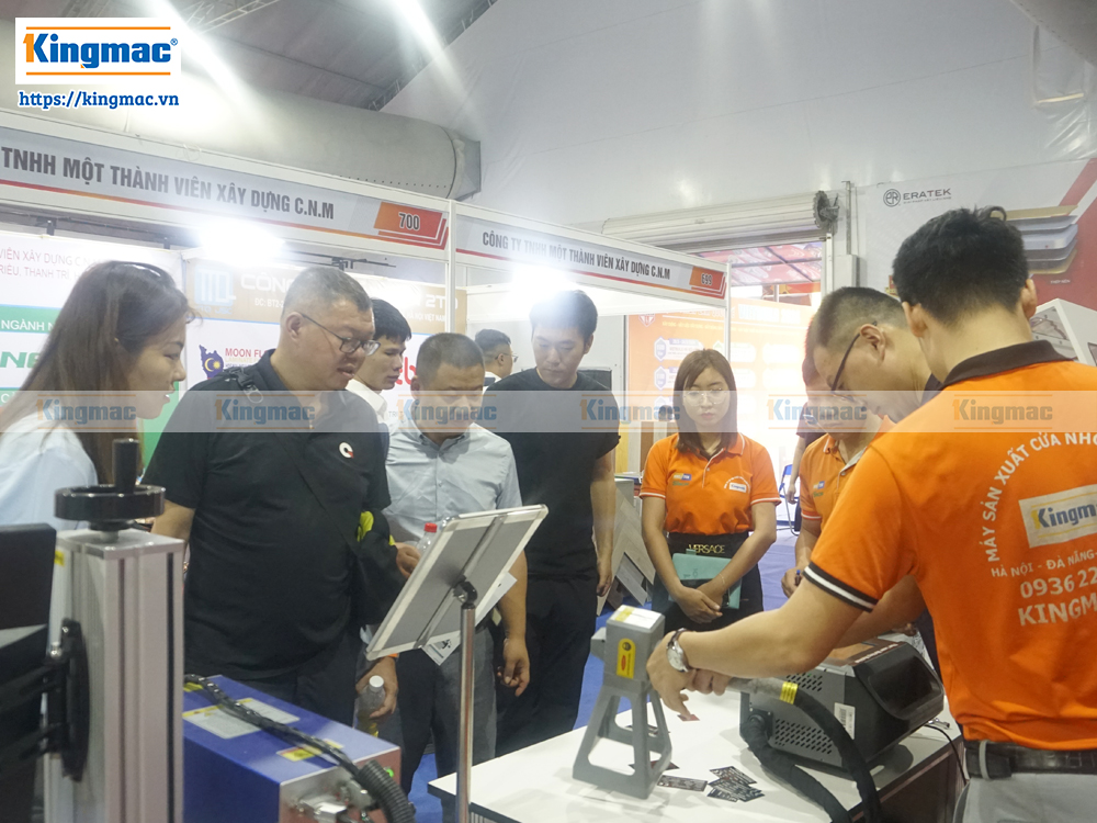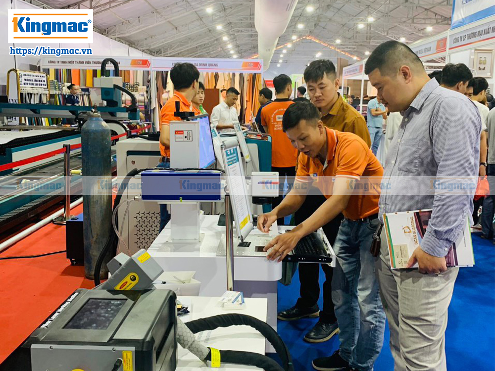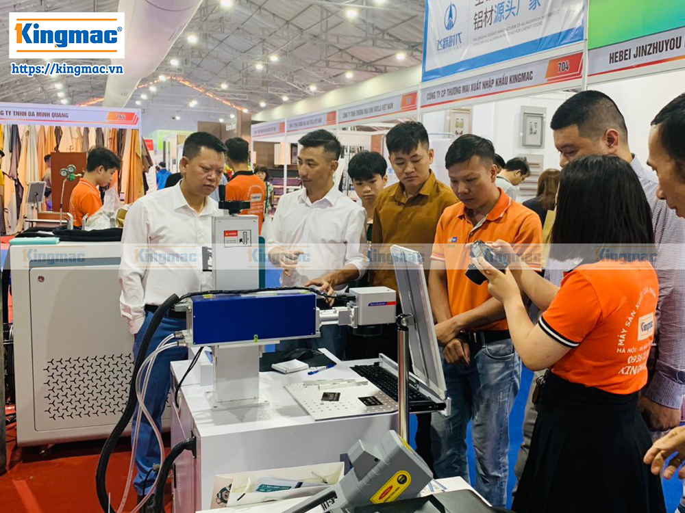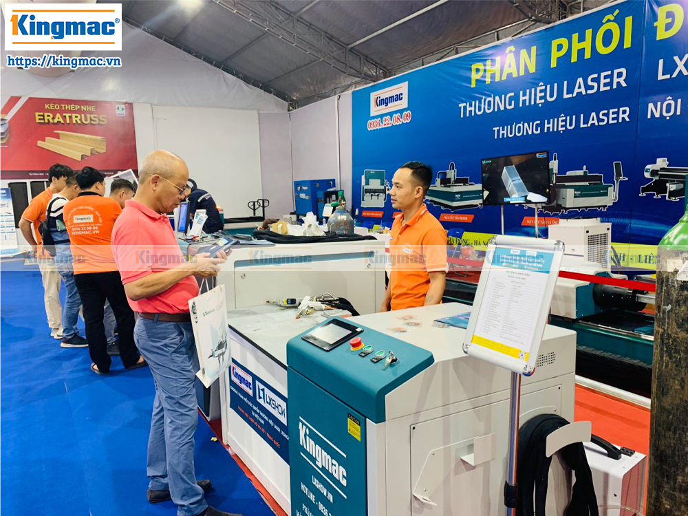 Khách hàng tham quan gian hàng máy laser Kingmac