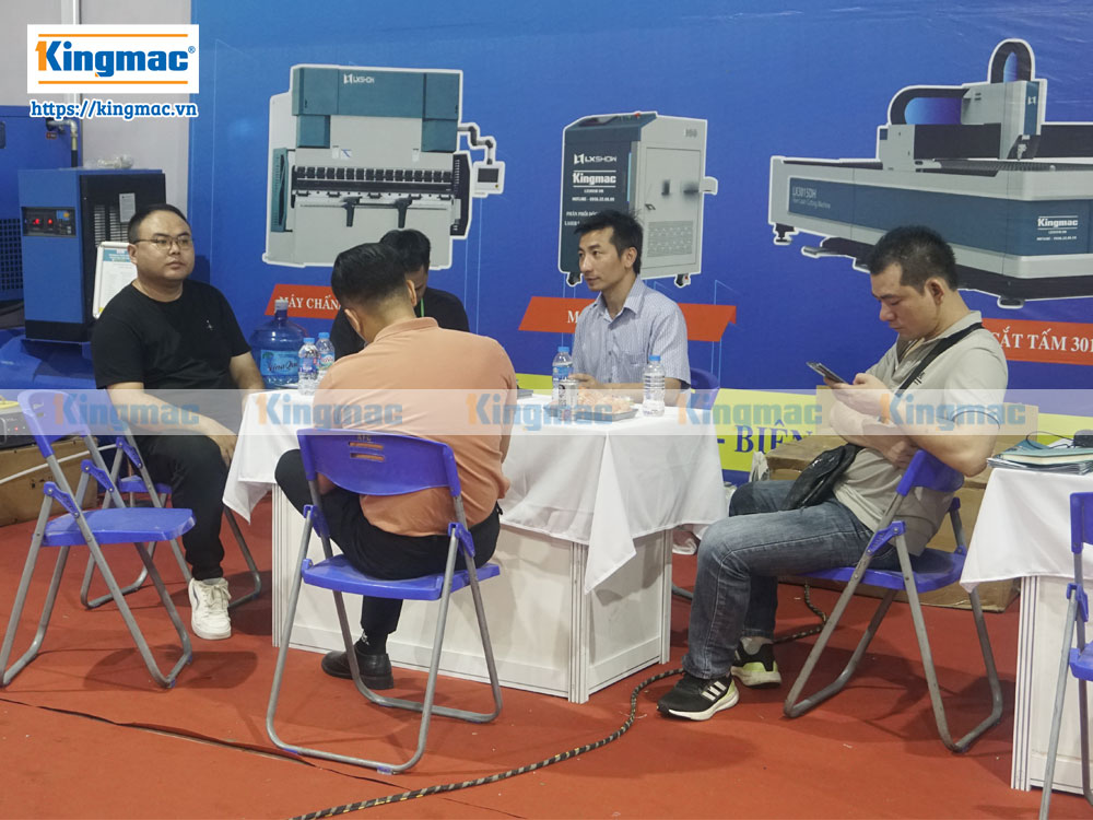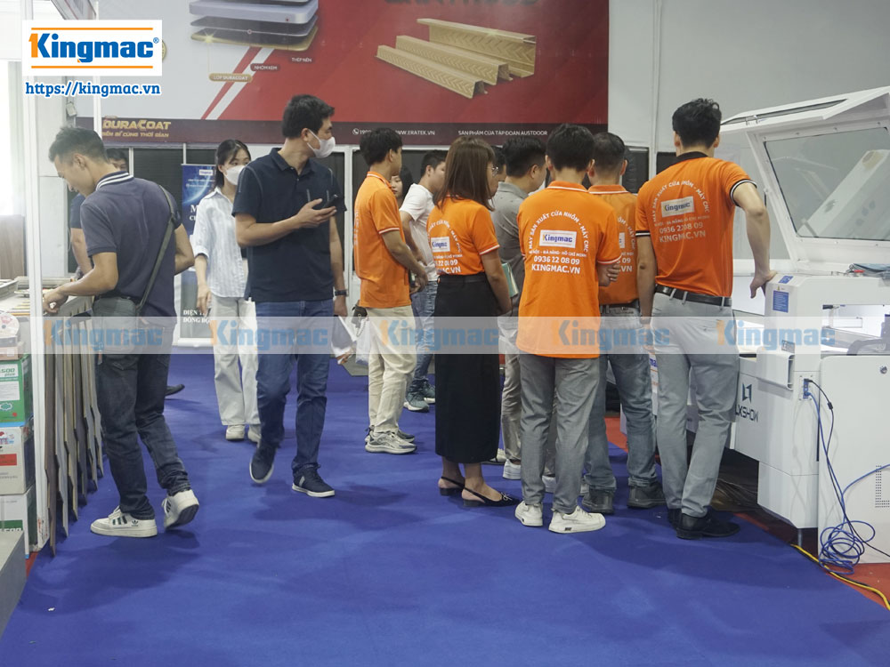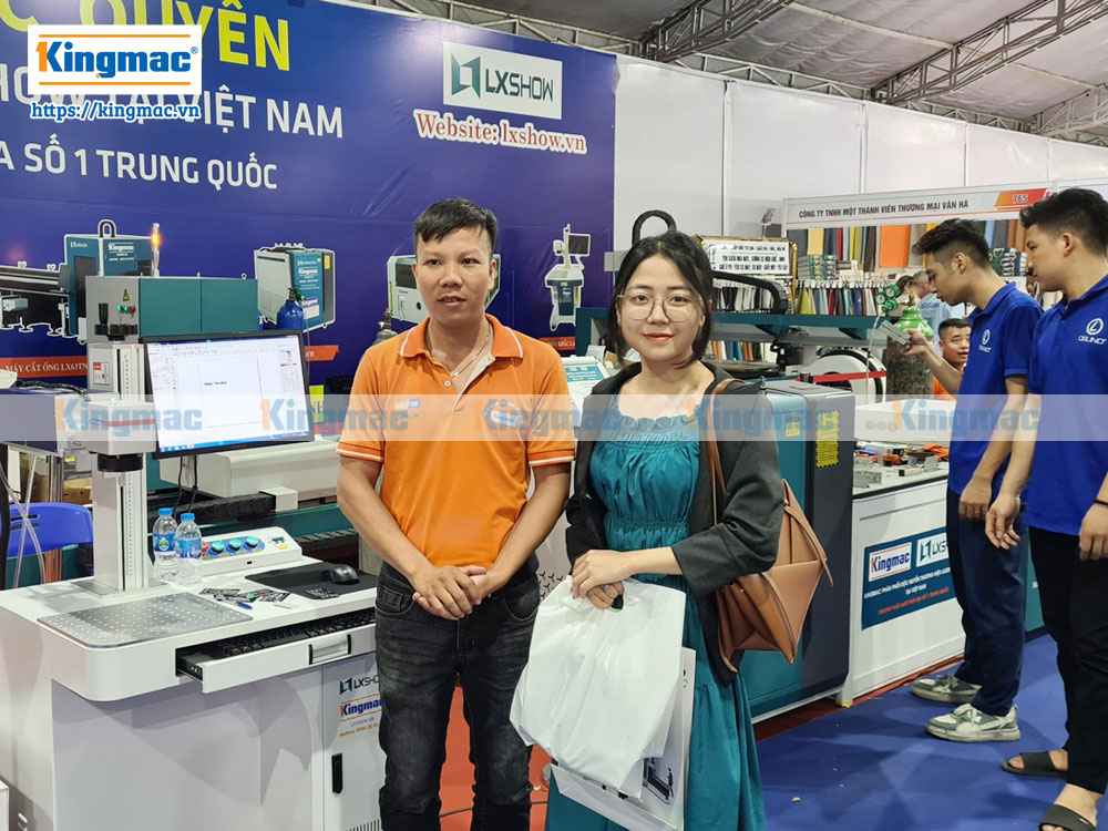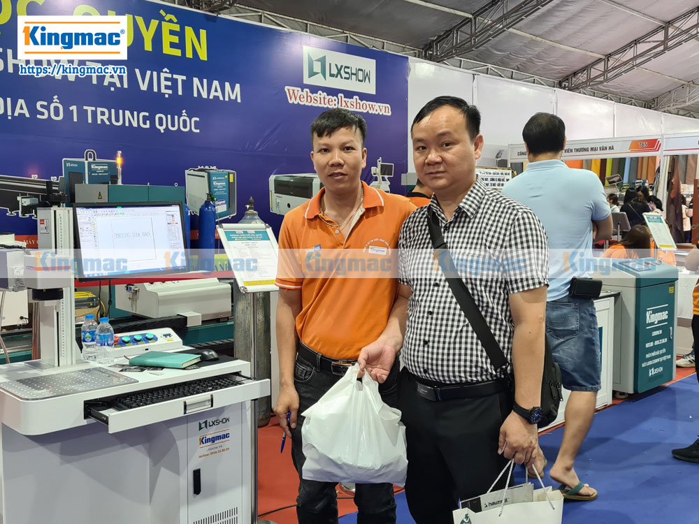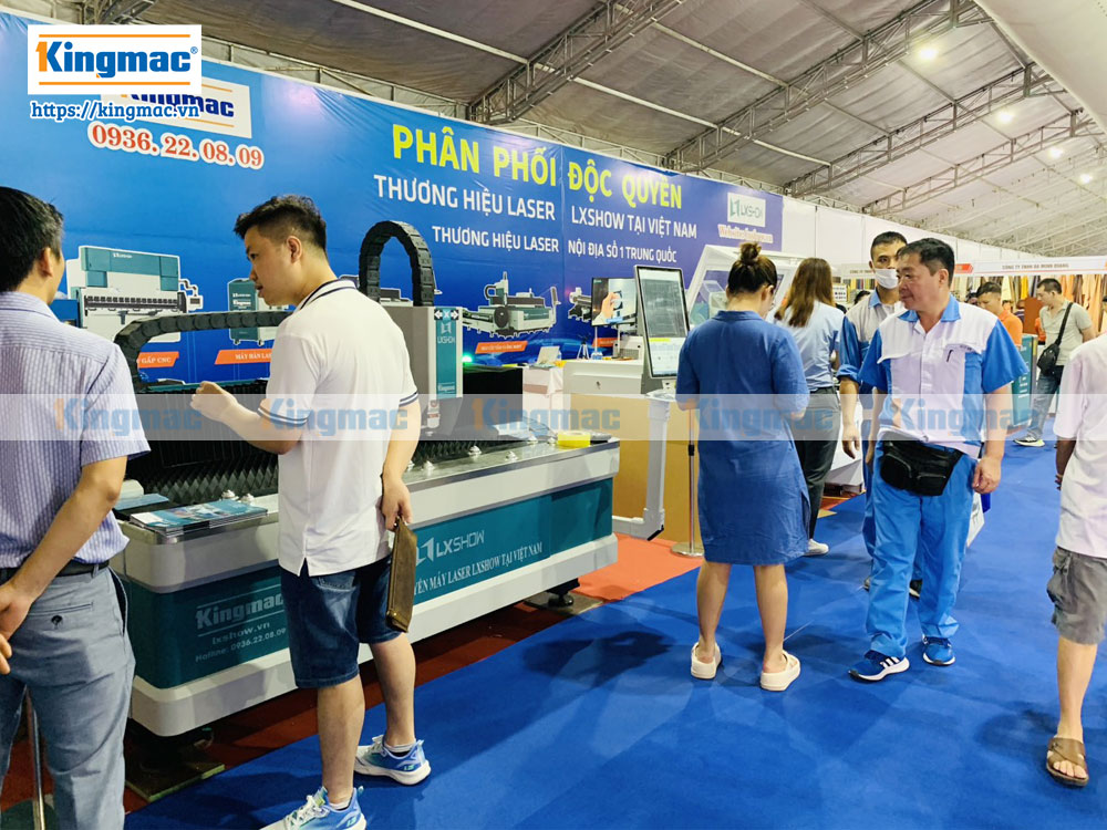Khách hàng tham quan gian hàng máy laser Kingmac