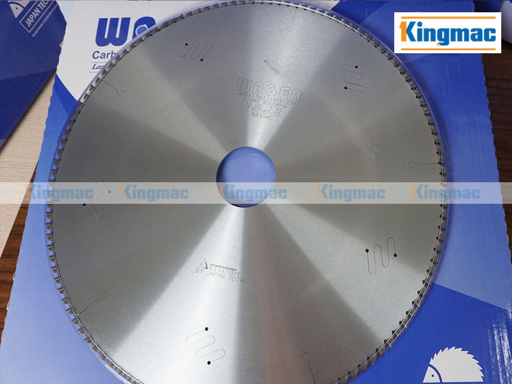 Lưỡi cắt nhôm 405 Wagen có thông số kỹ thuật: đường kính ngoài 405mm, đường kính trục 60mm, độ dày me 3.5mm, số răng 120 răng.