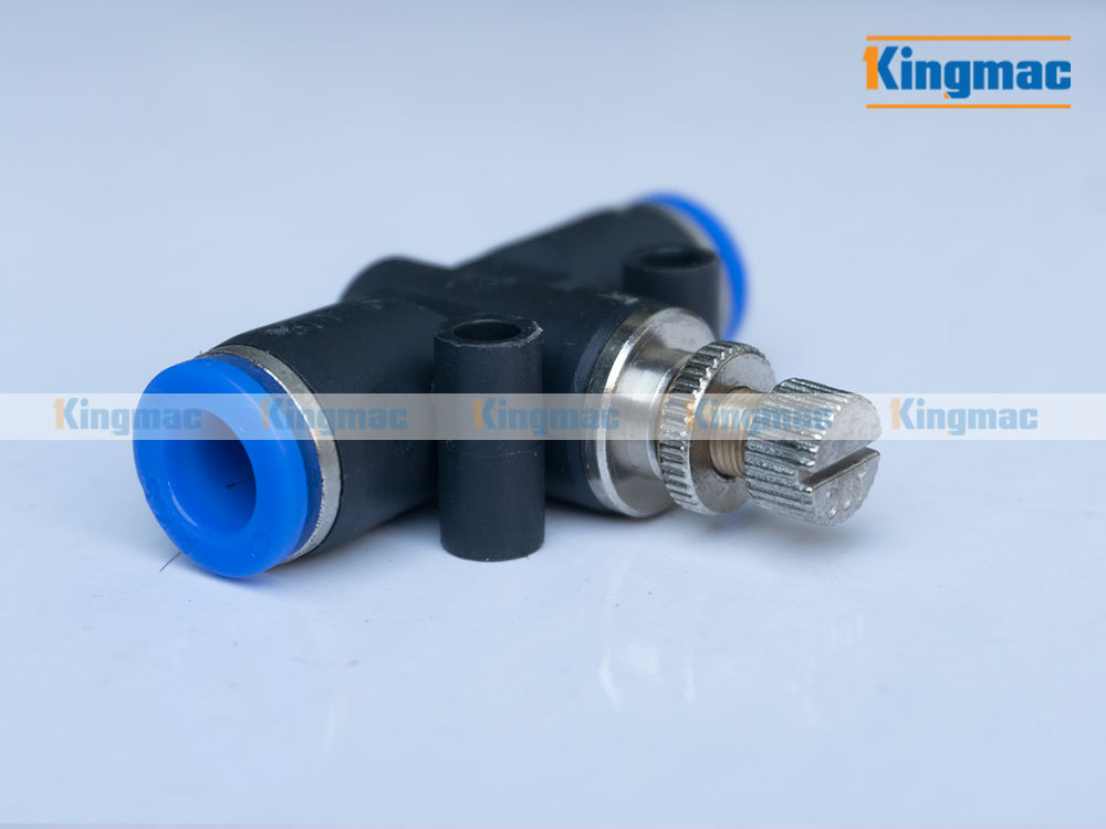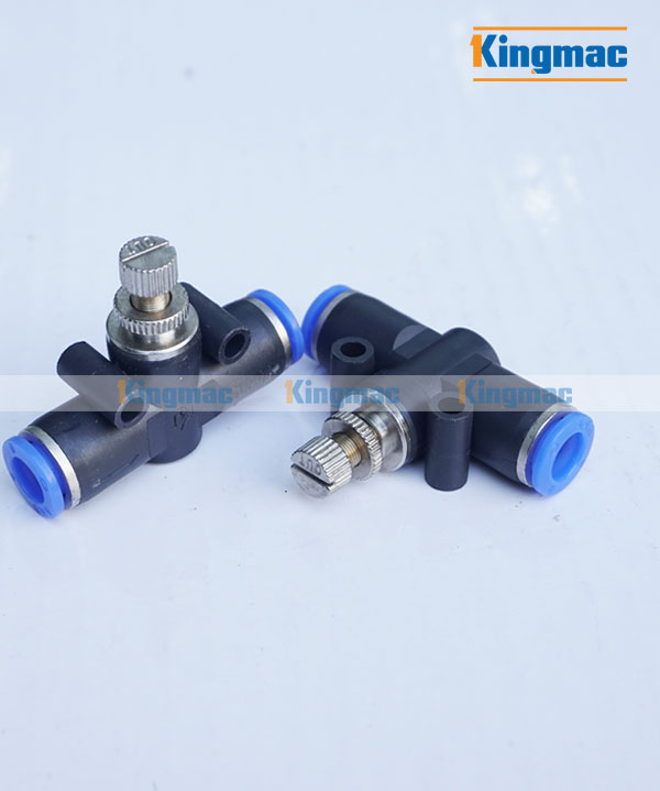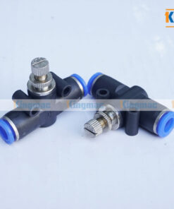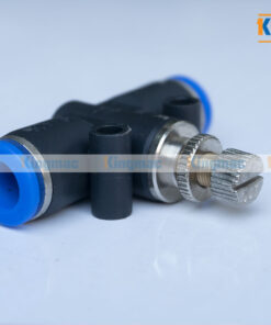 Van Chiết Áp 8, 2 đầu là loại phụ kiện dùng để nối nối nhanh dây dẫn khí nén, ở giữa có 1 van chỉnh áp lực hơi điều tiết lưu lượng khí ra vào.